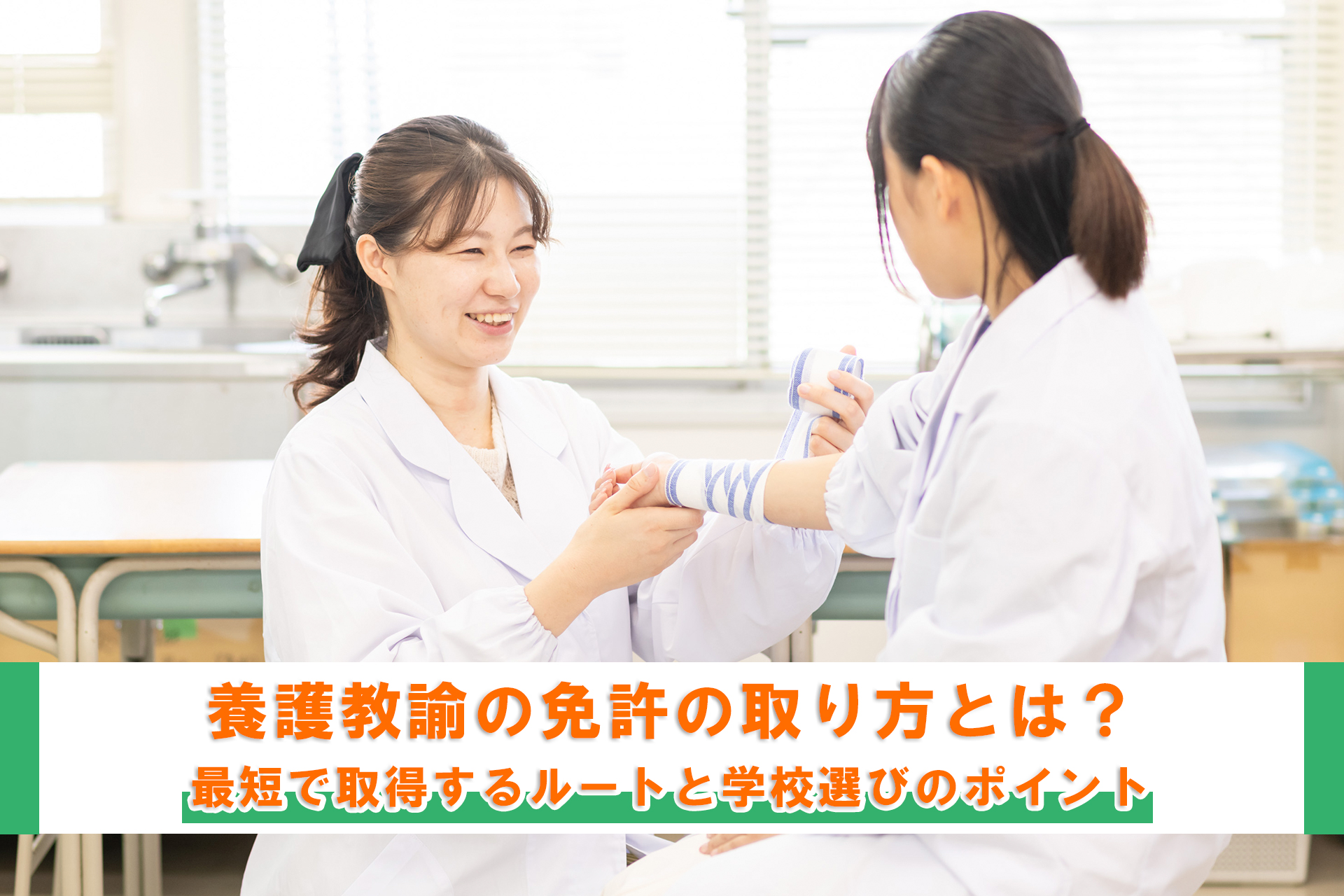 養護教諭になるには、教職課程(養護教諭免許状)を修了できる大学・短大への進学が基本であり、最短ルートは専門学校や短期大学への直接進学です。